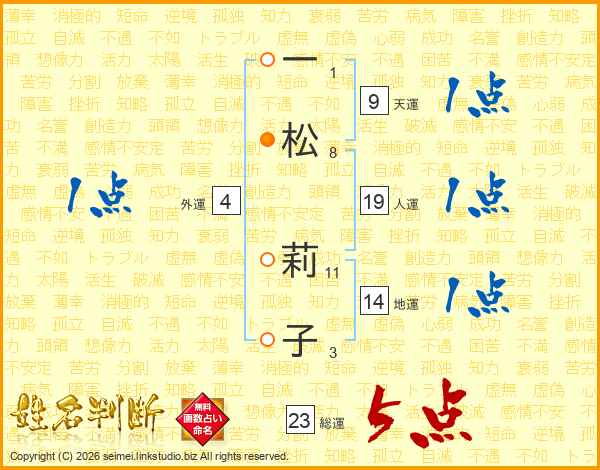 一松莉子さんの総運は23画の5点!
