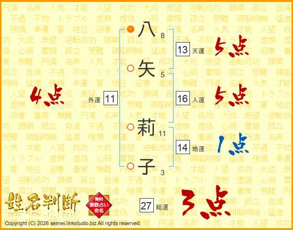 八(8画)矢(5画) 莉(11画)子(3画)