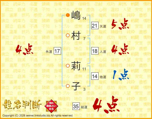 嶋村莉子さんの総運は35画の4点!