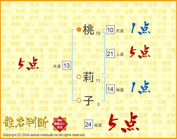 桃莉子さんの総運は24画の5点!