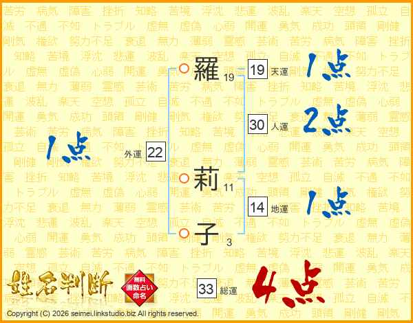 羅莉子さんの総運は33画の4点!