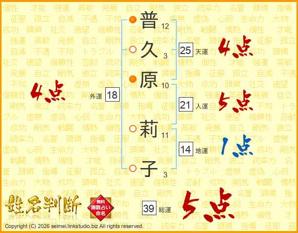 普久原莉子さんの総運は39画の5点!