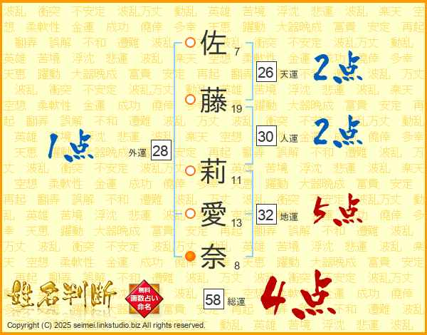 佐藤莉愛奈さんの総運は58画の4点!