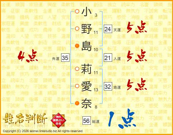 小野島莉愛奈さんの総運は56画の1点!