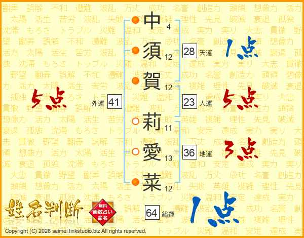 中須賀莉愛菜さんの外運は41画の5点!