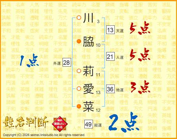 川脇莉愛菜さんの総運は49画の2点!