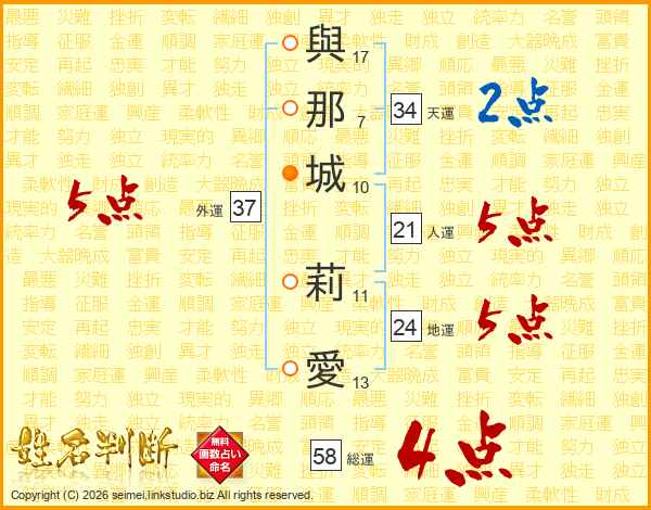 與那城莉愛さんの総運は58画の4点!