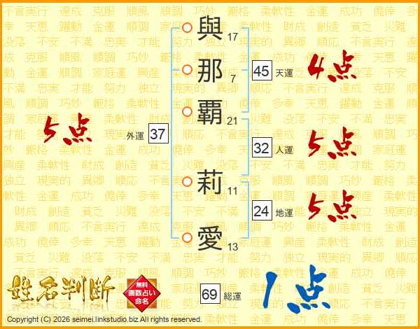 與那覇莉愛さんの天運は45画の4点!