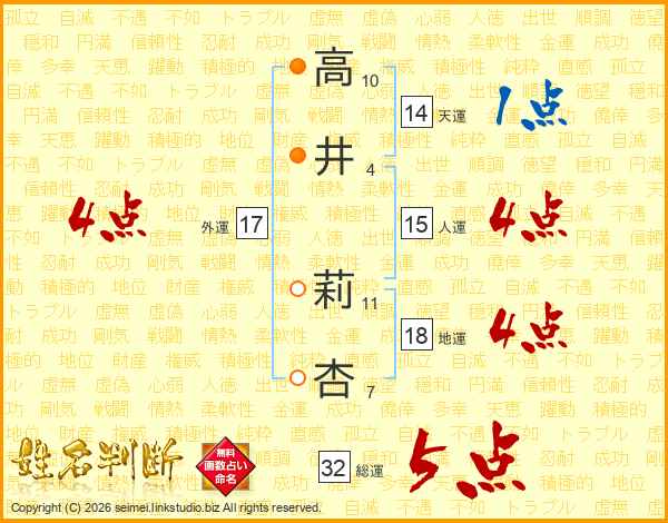 高井莉杏さんの総運は32画の5点!