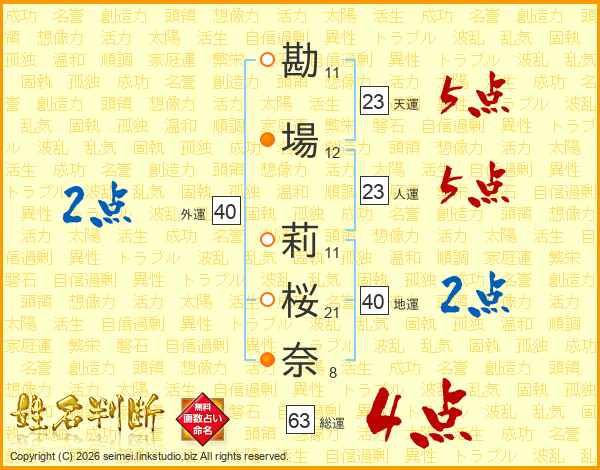 勘場莉桜奈さんの天運は23画の5点!