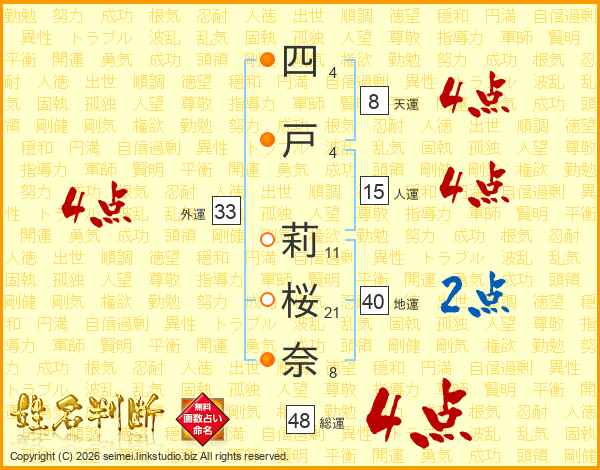 四戸莉桜奈さんの外運は33画の4点!