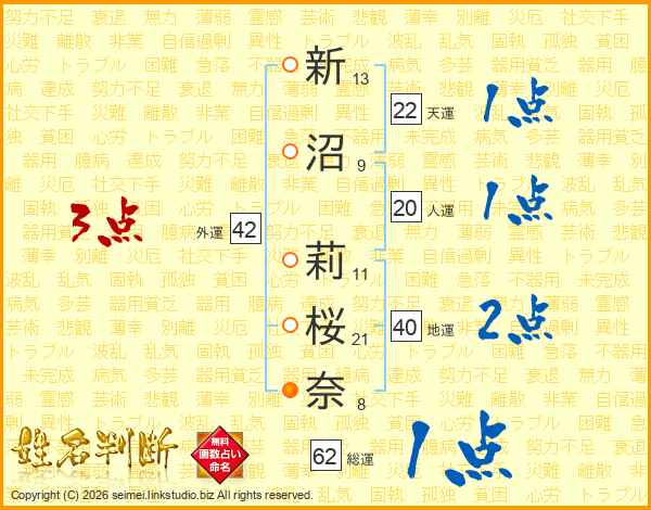 新沼莉桜奈さんの外運は42画の3点!
