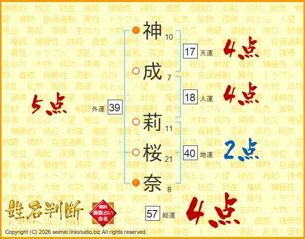 神成莉桜奈さんの外運は39画の5点!