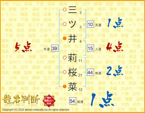 三ツ井莉桜菜さんの外運は39画の5点!