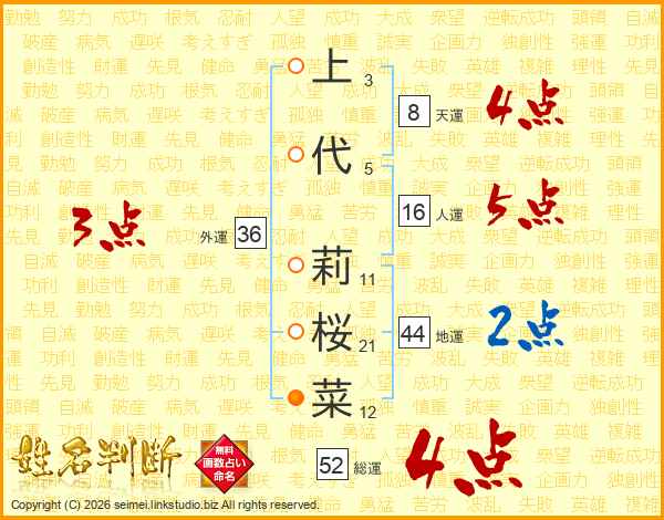 上代莉桜菜さんの総運は52画の4点!