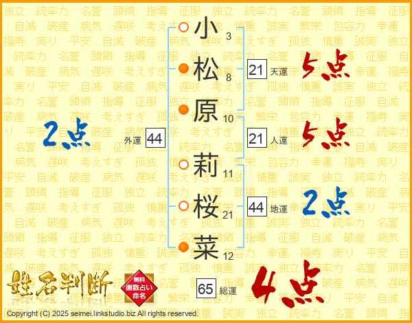 小(3画)松(8画)原(10画) 莉(11画)桜(21画)菜(12画)