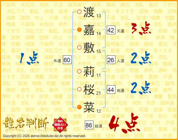 渡嘉敷莉桜菜さんの総運は86画の4点!