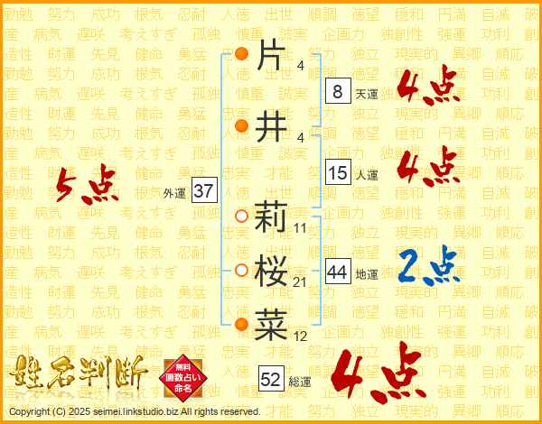 片(4画)井(4画) 莉(11画)桜(21画)菜(12画)