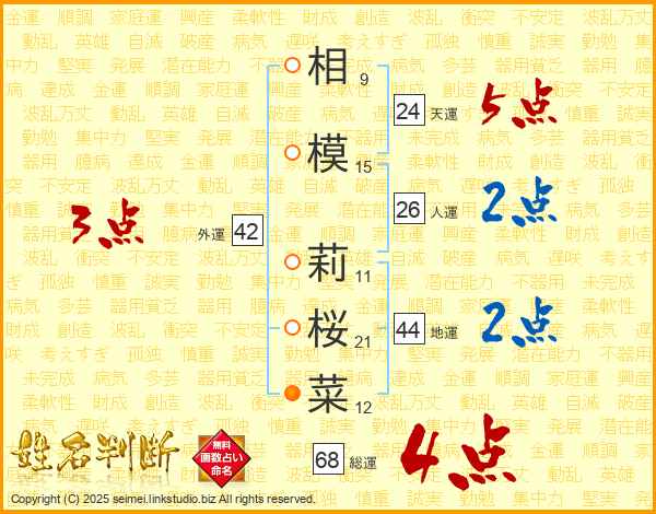 相(9画)模(15画) 莉(11画)桜(21画)菜(12画)
