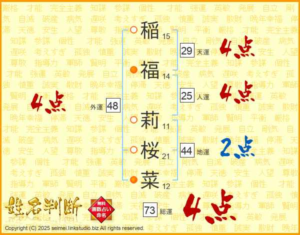 稲(15画)福(14画) 莉(11画)桜(21画)菜(12画)