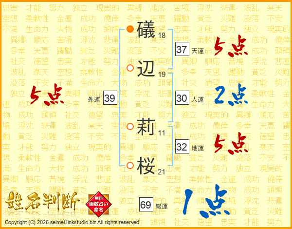 礒辺莉桜さんの外運は39画の5点!