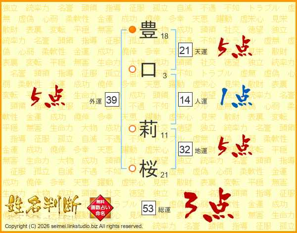 豊(18画)口(3画) 莉(11画)桜(21画)