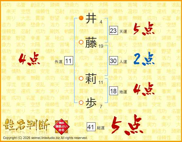 井藤莉歩さんの総運は41画の5点!