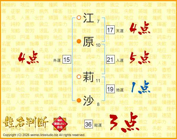 江原莉沙さんの外運は15画の4点!