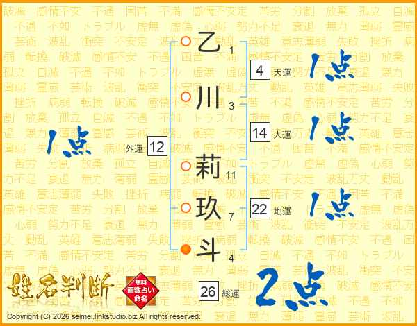 乙川莉玖斗さんの総運は26画の2点!