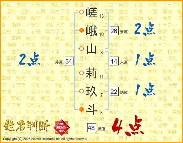 嵯峨山莉玖斗さんの総運は48画の4点!