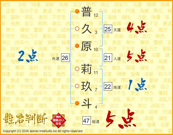 普久原莉玖斗さんの総運は47画の5点!