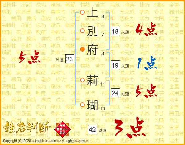 上別府莉瑚さんの外運は23画の5点!