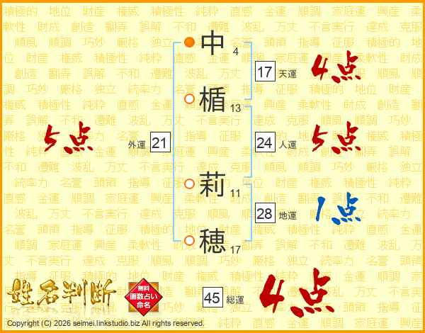 中楯莉穂さんの総運は45画の4点!