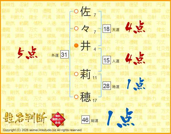 佐々井莉穂さんの外運は31画の5点!