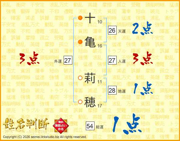 十(10画)亀(16画) 莉(11画)穂(17画)