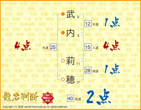 武(8画)内(4画) 莉(11画)穂(17画)