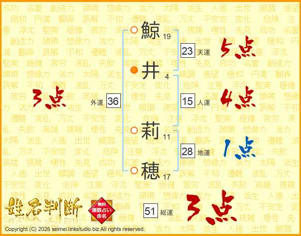 鯨井莉穂さんの総運は51画の3点!