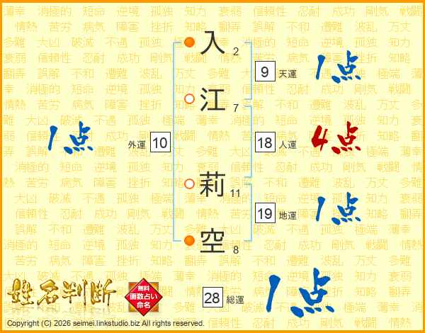入江莉空さんの総運は28画の1点!