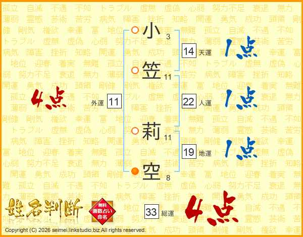 小笠莉空さんの総運は33画の4点!