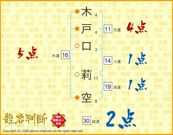 木戸口莉空さんの天運は11画の4点!