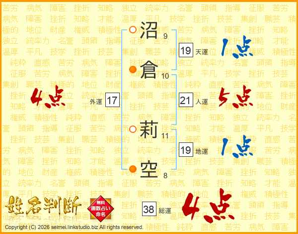 沼倉莉空さんの外運は17画の4点!