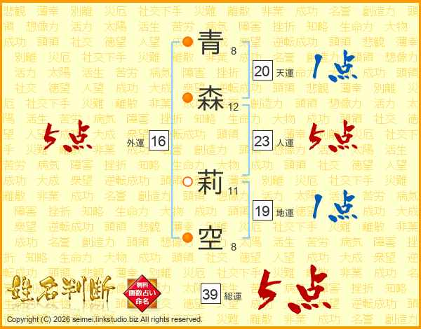 青森莉空さんの総運は39画の5点!
