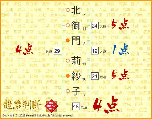 北御門莉紗子さんの総運は48画の4点!