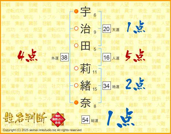 宇治田莉緒奈さんの外運は38画の4点!