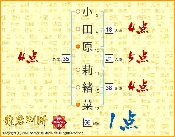 小田原莉緒菜さんの外運は35画の4点!
