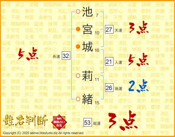 池宮城莉緒さんの総運は53画の3点!
