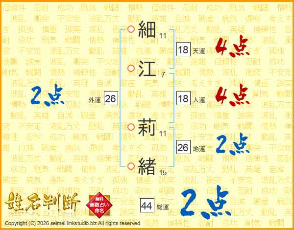 細江莉緒さんの地運は26画の2点