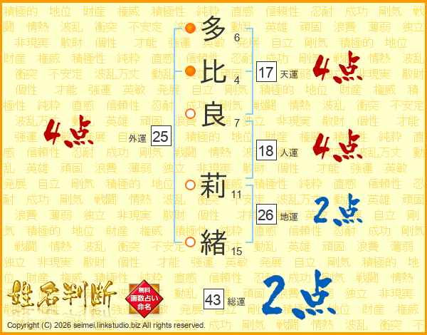 多比良莉緒さんの地運は26画の2点!