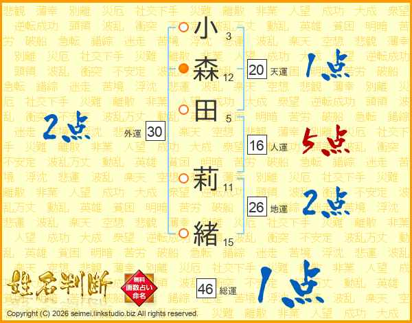 小森田莉緒さんの地運は26画の2点!