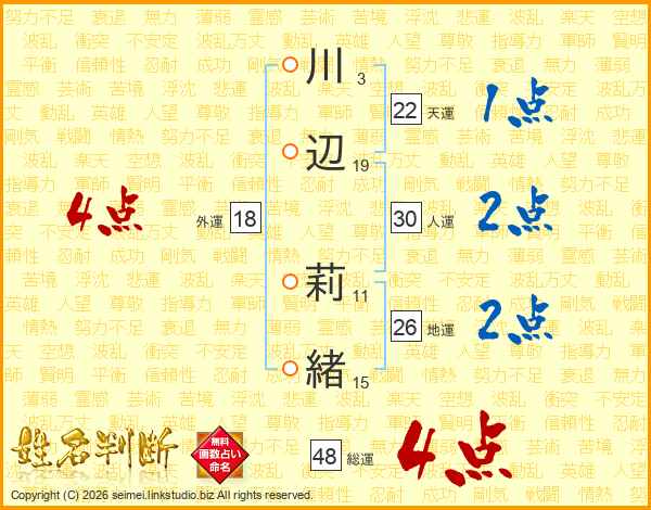 川辺莉緒さんの総運は48画の4点!